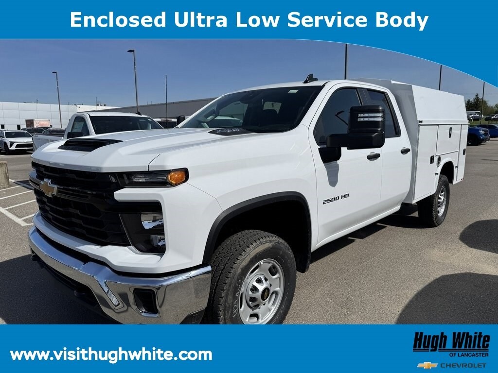 Summit White 2025 Chevrolet Silverado 2500HD Work Truck with an 8' Knapheide Ultra Low Enclosed Roof Service Body! Price includes $18,863 of dealer added accessories.