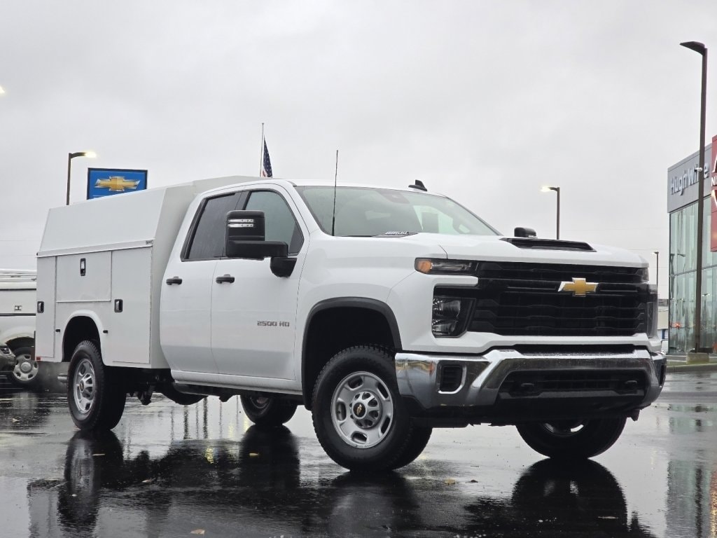 Summit White 2025 Chevrolet Silverado 2500HD Work Truck with a Knapheide Ultra Low-Roof Enclosed Service Body. Call Rod @ 740 652 2066 for more info! Free delivery anywhere in Ohio!. TRAILER BRAKE CONTROLS, APPLE CARPLAY, ANDROID AUTO, TOW PKG, BACKUP CAMERA, BLUETOOTH, Remote entry. Your NEW 2025 Chevrolet Silverado 2500HD 2WD Double Cab Long Bed Work Truck is perfect for daily work or weekend road trips around Fairfield County, OH.