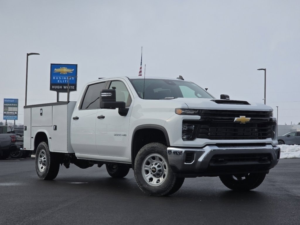 Summit White 2026 Chevrolet Silverado 3500HD Work Truck with a Knapheide 8' Service Body! Call or text Rod @ 740 438 0830 for more info! APPLE CARPLAY, TRAILER BRAKE CONTROLS, ANDROID AUTO, TOW PKG, BED LINER, BACKUP CAMERA, BLUETOOTH, Remote entry. Your new 2026 Chevrolet Silverado 3500HD Chassis Work Truck is perfect for daily work trips around Fairfield County, OH.