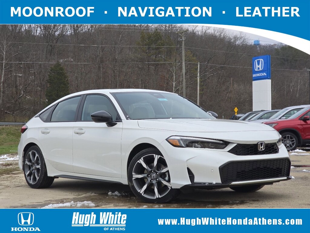 DESIRABLE FEATURES: LEATHER, NAVIGATION, MOONROOF, HYBRID, APPLE CARPLAY, ANDROID AUTO, TECH PKG, LANE-DEPARTURE WARNING, HEATED-SEATS, REMOTE START, KEYLESS-START, PREMIUM AUDIO, BACKUP CAMERA, BLUETOOTH, WIRELESS PHONE CHARGING, BLIND-SPOT MONITORING, MULTI-ZONE AC, BACKUP-SENSORS, WiFi Hotspot, Remote entry. Your new 2026 Honda Civic Hatchback Hybrid Sport Touring is one of 4 other models like this in stock Athens drivers will find available to test drive at our new vehicle showroom in Athens, OH. This Honda Civic Hatchback Hybrid is perfect for any ones car needs in our neighboring communities of Athens, OH.TECHNOLOGY FEATURES: This Honda Civic Hatchback Hybrid for sale near Athens includes GPS System, Navigation System, Keyless Start, Bluetooth Connection, HD Radio.