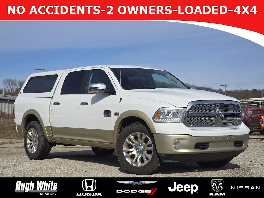 Free CARFAX report! DESIRABLE FEATURES: ONLY 2 OWNERS, LEATHER, MOONROOF, NAVIGATION, TRUCK CAP, TRAILER BRAKE CONTROLS, CLEAN CARFAX, HEATED-SEATS, REMOTE START, HEATED-REAR SEATS, COOLED SEATS, TECH PKG, PARK ASSIST, 4X4, HEATED-STEERING WHEEL, TOW PKG, PREMIUM AUDIO, RUNNING BOARDS, BLUETOOTH, BED LINER, BACKUP CAMERA, FOG LAMPS, MULTI-ZONE AC, BACKUP-SENSORS, WiFi Hotspot, SiriusXM, Remote entry. Your 2014 Ram 1500 Longhorn is perfect for daily work or weekend road trips to our neighboring communities of Athens.